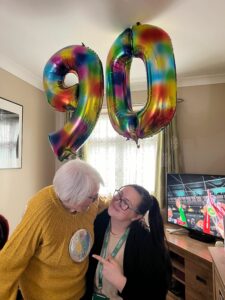Leading up to that day, Irene has been chatting with her care professional Rosie during her visits, and had mentioned to her that she had never had a birthday badge – In all her 90 years!