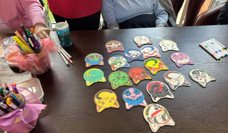 The team spent time with residents and staff, collaborating on a creative project to design and make coasters that were sold to raise funds for Dementia UK. It was a chance not only to get creative together but also to get together and feel a sense of purpose in support of a cause that touches so many lives. Each one of the coasters was sold which was just wonderful to see!