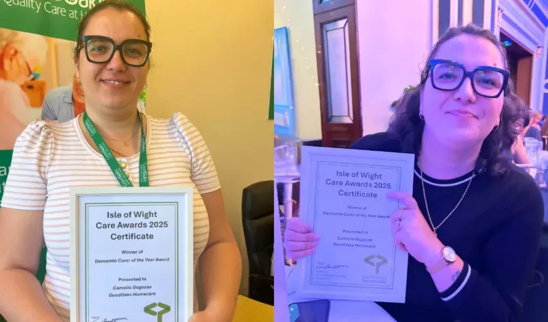 Camelia’s well-deserved win is a true reflection of the dedication, compassion, and unwavering commitment shown by the entire team at GoodOaks Isle of Wight. Every single day, the team works tirelessly to provide outstanding, person-centred dementia care, making a real and lasting difference to the lives of their clients and their families across the island.