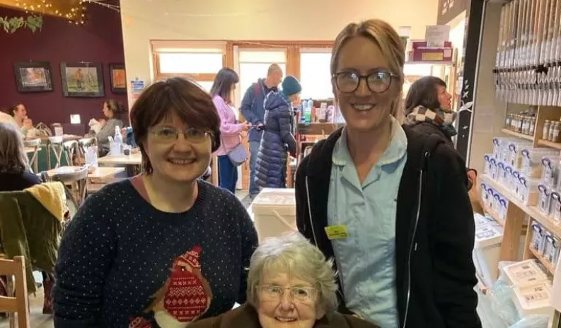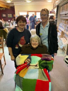 Dorothy and Kate met with midwife Amy today in a café in Florence park for a coffee and to present their first blanket. Amy and her team loved the blanket so much that they asked if the ladies would make smaller blankets for premature babies. This will be their next mission for 2024.